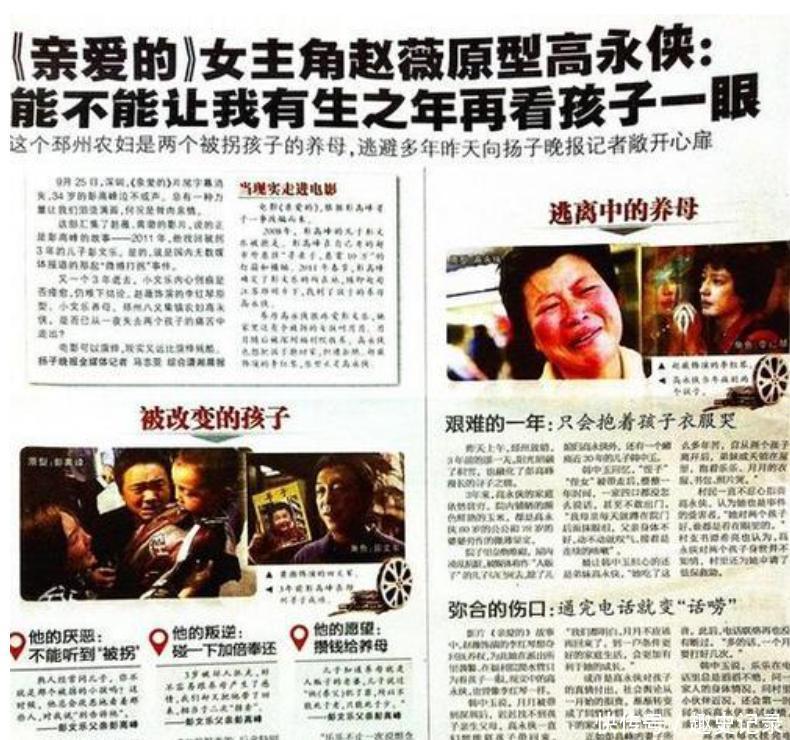 2014年,陈可辛导演拍的电影《亲爱的》在全国院线公映,并引起全国热议,被网友评为“十一假期最感动人心的电影”。